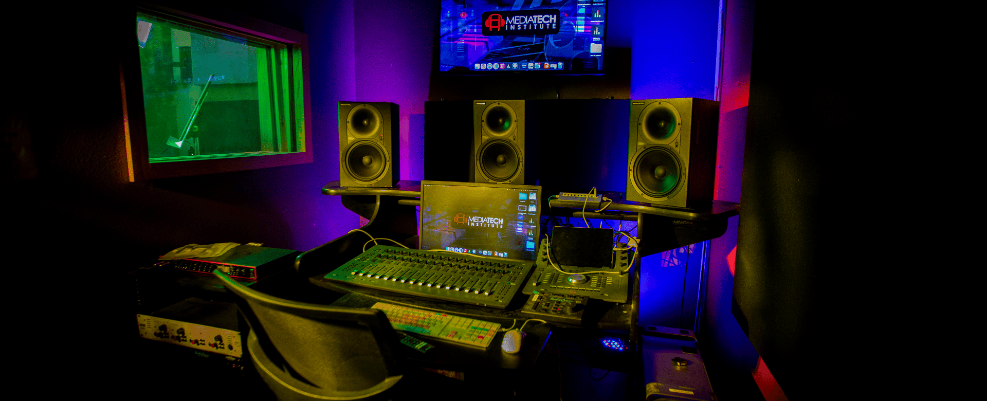 Studio F is equipped with specialized tools for production and editing in a 5.1 Surround Sound environment, making it perfect for both audio and video editing projects. Apple, Digidesign, M-Audio, and other programs contribute to the powerful editing ability in Studio F.